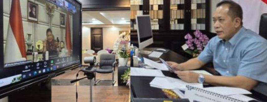 Menteri Koperasi Ferry Juliantono berinteraksi secara daring pada Rakortas dipimpin Menko Bidang Perekonomian Airlangga Hartarto. Foto: Humas Kemenkop.