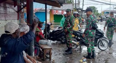 Patroli Kodim 1710/Mimika adakan komunikasi sosial ketika mendatangi lokasi masyarakat yang tengah berkumpul. Foto: Pendim 1710/Mimika.