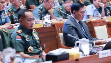 Panglima TNI Jenderal TNI Agus Subiyanto bersama Menhan RI Sjafrie Sjamsoeddin rapat kerja dengan Komisi I DPR RI. Foto: Puspen TNI.