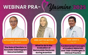 Webinar ini dibuka secara resmi oleh Dekan FKG YARSI, Prof. Dr. drg. Bambang S. Trenggono, M.Biomed. Dia menegaskan pentingnya forum ilmiah sebagai sarana berbagi pengetahuan, memperkuat jejaring profesi, sekaligus meningkatkan kualitas layanan kedokteran gigi di Indonesia.