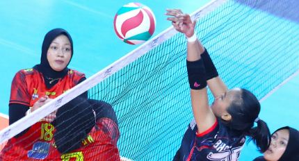 Namun TNI AU tetap konsisten dengan serangan balik dan penguasaan bola. Kombinasi smes dari sisi sayap membuat mereka kembali unggul di set kedua dengan 26-24.