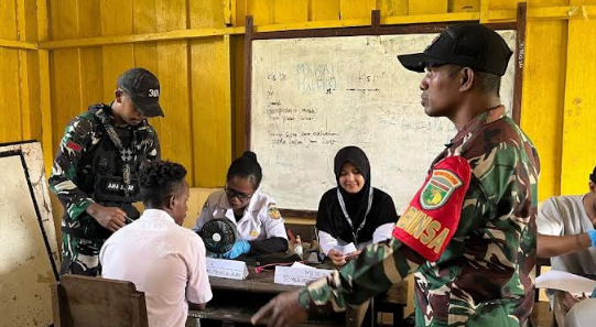 Sebagai wujud dukungan terhadap program pemerintah serta bentuk kepedulian satuan kewilayahan terhadap kesehatan generasi penerus Bangsa, Babinsa Koramil 1710-06/Agimuga Serda Herman melaksanakan pendampingan Nakes pada kegiatan cek kesehatan gratis kepada pelajar SMPN Kiliarma, Distrik Agimuga, Kabupaten Mimika, Papua Tengah, Selasa (7/10/2025).