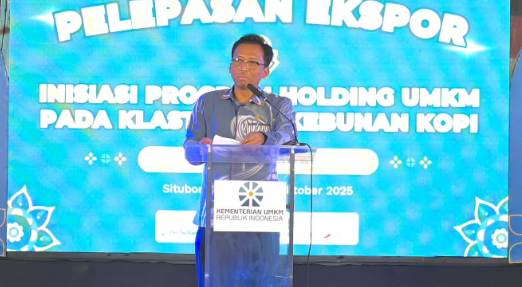 SITUBONDO, gen-idn.com – Deputi Bidang Usaha Menengah, Kementerian Usaha Mikro, Kecil dan Menengah (UMKM) Bagus Rachman melepas 15 ton kopi specialty Argopuro Walida senilai Rp3 miliar ke Jeddah, Arab Saudi, Senin (6/10/2025).