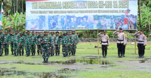 Upacara pembukaan TMMD ke-126 Tahun 2025 di Lapangan Bola Desa Wama, Oba Selatan, Kota Tidore Kepulauan, Maluku Utara. Foto: Pendim 1505/Tidore.