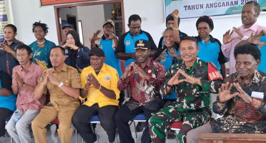 Peserta usai mengikuti Musrenbang Tingkat Kampung, mengabadikan momentum dengan foto bersama. Foto: Pendim 1710/Mimika.