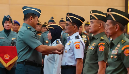 Irjen TNI Laksdya TNI Hersan mewakili Panglima TNI Jenderal TNI Agus Subiyanto pimpin upacara Sertijab sejumlah Kabalakpus TNI. Foto: Puspen TNI.