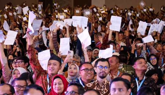 Peserta Kredit Usaha Rakyat yang mengikuti akad massal dari 38 provinsi Indonesia. Foto: Humas KemenUMKM.