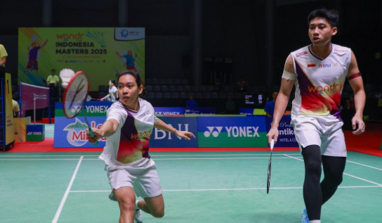 MEDAN, gen-idn.com – Pasangan ganda campuran tuan rumah Marwan Faza/Aisyah Salsabila Putri Pranata ke perempatfinal wondr by BNI Indonesia Masters 2025 setelah menang dari Daisuke Sano/Yuna Kato (Jepang) 21-12, 21-16 di GOR PBSI, Medan, Sumatera Utara, Kamis (23/10/2025).