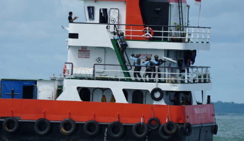 Penyergapan terhadap kapal di laut Bangka Belitung yang mengangkut pasir timah ilegal Foto: Puspen TNI.