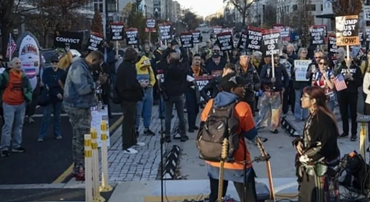 Mereka membawa spanduk bertuliskan “Trump harus pergi sekarang!” dan “Makzulkan, Hukum, Copot.” “Bahaya, bahaya, ada seorang fasis di Gedung Putih,” dan “Rezim Trump harus pergi,” teriak mereka.