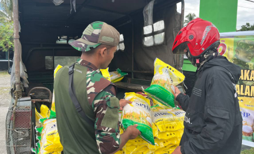 Kodim 1710/Mimika menyalurkan 1 ton beras SPHP kemasan 5 kg kepada masyarakat untuk Gerakan Pangan Murah. Foto: Pendim 1710/Mimika.