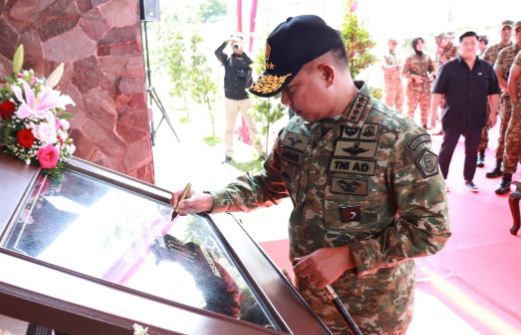 Panglima TNI Jenderal TNI Agus Subiyanto menandatangani dan meresmikan Rusun Serka Dedy Unadi di Komplek Perumahan Perwira Tinggi Mabes TNI, Jatikarya, Bekasi, Jawa Barat. Foto: Puspen TNI.
