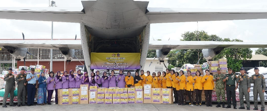 Penyerahan bantuan diterima langsung oleh Letkol Czi Angga Wijaya, selaku Pabandya 3/Baksos Paban V/Bhakti Ster TNI untuk segera diterbangkan ke daerah terdampak, untuk disalurkan sesuai lokasi. Rencananya distribusi bantuan untuk masing-masing wilayah yaitu, Aceh 280 koli, Medan 259 koli, Padang 225 koli, yang berisi sembako, makanan ringan, peralatan mandi dan pampers.