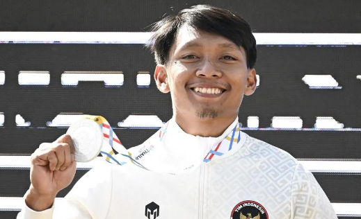 Rendy Varera Sanjaya dengan medali perak pertamanya untuk kontingen Indonesia. Foto: Ant.