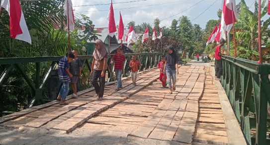 Aktivitas warga Gampong Matang Bangka dengan Gampong Matang Teungoh kembali terhubung setelah Satgas Penanggulangan Bencana Alam Kodam Iskandar Muda menbangun jembatan Bailey. Foto: Puspen TNI.