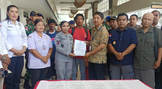 Kepala Stasiun Bakamla Kupang Mayor Bakamla Yeanry M. Olang, S.Kom., M.M., secara resmi menerima keenam ABK dari KBRI Dili melalui penandatanganan Berita Acara Serah Terima. Kegiatan tersebut disaksikan oleh Kepala PLBN Motaain Atambua, perwakilan Dinas Kelautan dan Perikanan Provinsi NTT wilayah Kabupaten TTS, TTU, Belu dan Malaka serta unsur Imigrasi dan instansi terkait lainnya.