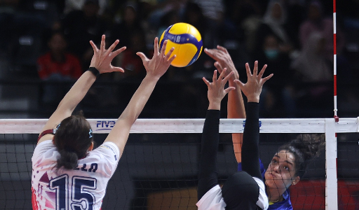 Yolla Yuliana (15) sang kapten Jakarta Livin Mandiri memblok spike lawannya dari tim Jakarta Electric PLN, namun akhir pertandingan kalah telak 0-3. Foto: Humas.