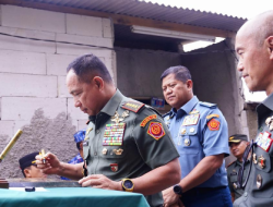Panglima TNI Jenderal TNI Agus Subiyanto membubuhkan tandatangannya pada prasasti Masjid Jami’ An-Nur di Kampung Pamoyanan, Desa Pada Asih, Cisarua, Bandung Barat, Jawa Barat. Foto: Puspen TNi.