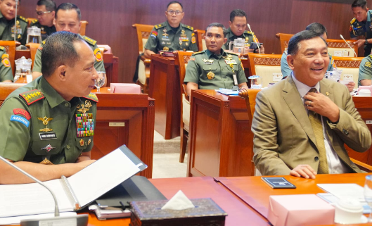 Panglima TNI Jenderal TNI Agus Subiyanto dan Menhan Sjafrie Sjamsoeddin mengikuti rapat kerja dengan Komisi I DPR RI. Foto: Puspen TNI.