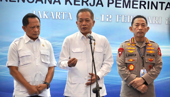 Didampingi Mendagri dan Kapolri, Menkop Ferry Juliantono mengajak seluruh jajaran Kepolisian untuk terus bersinergi dan memberi dukungan mensukseskan program KDKMP. Foto: Humas.