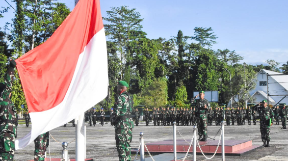 Upacara bendera 17-an di Kodim 1710/Mimika sedang berlangsung diikuti seluruh prajurit dan PNS jajaran Kodim 1710/Mimika. Foto: Pendim 1710/Mimika.