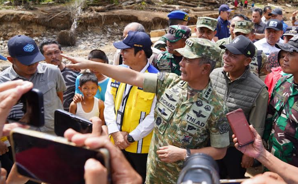 Kepala Staf Umum TNI Letjen TNI Richard Tampubolon menunjuk ke area penanganan Pascabencana Alam di Kabupateen Tapanuli Tengah. Foto: Puspen TNI.