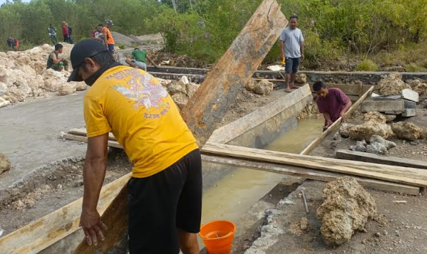 Satgas TMMD Ke-127 Kodim 1514/Morotai bersama masyarakat meneruskan pembangunan drainase di Desa Gotalamo, Kecamatan Morotai Selatan, Maluku Utara, Sabtu (7/3/2026). Foto: Pendim 1514/Morotai.
