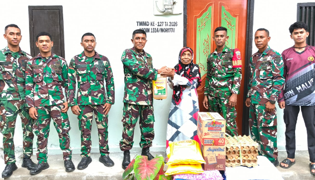 MOROTAI, gen-idn.com – Dalam rangka pelaksanaan program TNI Manunggal Membangun Desa (TMMD) Ke-127 Tahun 2026, Dansatgas TMMD Kodim 1514/Morotai Letkol Arh Ir. Masykur Akmal, S.T., M.T., memberikan santunan berupa paket sembako kepada warga di Desa Mandiri, Kecamatan Morotai Selatan, Maluku Utara, Selasa (10/3/2026). Kegiatan tersebut merupakan bagian dari kepedulian Satgas TMMD terhadap masyarakat, khususnya warga yang membutuhkan, sekaligus mempererat hubungan antara TNI dan masyarakat di wilayah pelaksanaan TMMD.