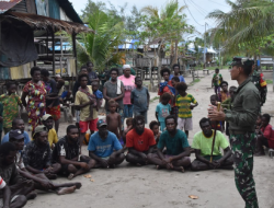 Dandim 1710/Mimika Letkol Inf Jozanda menguraikan rencana program TMMD Reguler ke-128 Kodim 1710/Mimika TA. 2026 di Kampung Keakwa, Distrik Mimika Tengah, Kabupaten Mimika, Papua Tengah. Foto: Puspen TNI.
