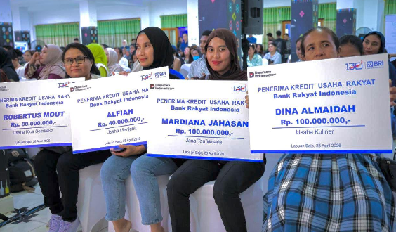 Mereka menunjukkan paket pinjaman Kredit Usaha Rakyat dilengkapi dengan nominalnya yang disalurkan BRI. Foto: Humas Kementerian UMKM.