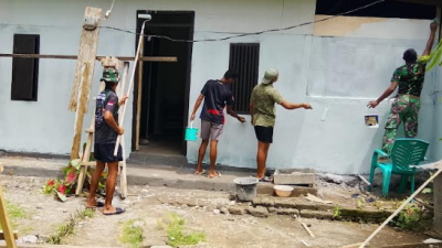 Personel TMMD Ke-127 Kodim 1514/Morotai Laksanakan Pengecatan RTLH di Desa Mandiri